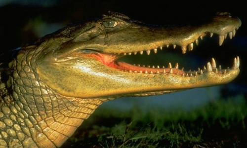 这是口鼻部最细长的一种鳄,口中有约100枚尖细的牙齿,牙齿大小不一,雄性嘴尖有个突起。