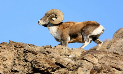 生态习性: 主栖于海拔3000-6000m的高山裸岩地带,经常出没于半开阔的峡谷和山麓间,很少在雪线以下活动。通常集成小群,有时集合成较大的群体,主要在晨昏活动,冬季也常常在白天觅食。食物包括草、树叶和嫩枝。盘羊善于爬山,比较耐寒。