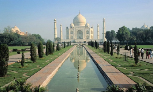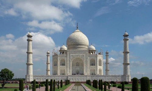 泰姬陵,全称为“泰姬·玛哈尔陵”,又译泰姬玛哈,是印度知名度最高的古迹之一,在今印度距新德里200多公里外的北方邦的阿格拉 (Agra)城内,亚穆纳河右侧。泰姬陵,全称为“泰姬·玛哈尔陵”,又译泰姬玛哈,是印度知名度最高的古迹之一,在今印度距新德里200多公里外的北方邦的阿格拉 (Agra)城内,亚穆纳河右侧。是莫卧儿王朝第5代皇帝沙贾汗为了纪念他已故皇后阿姬曼·芭奴,即泰姬·玛哈尔而建立的陵墓,被誉为“完美建筑”。 它由殿堂、钟楼、尖塔、水池等构成,全部用纯白色大理石建筑,用玻璃、玛瑙镶嵌,极高的艺术价值。是伊斯兰教建筑中的代表作。2007年7月7日,成为世界八大奇迹之一。2012年10月,迪拜宣布复制泰姬陵。